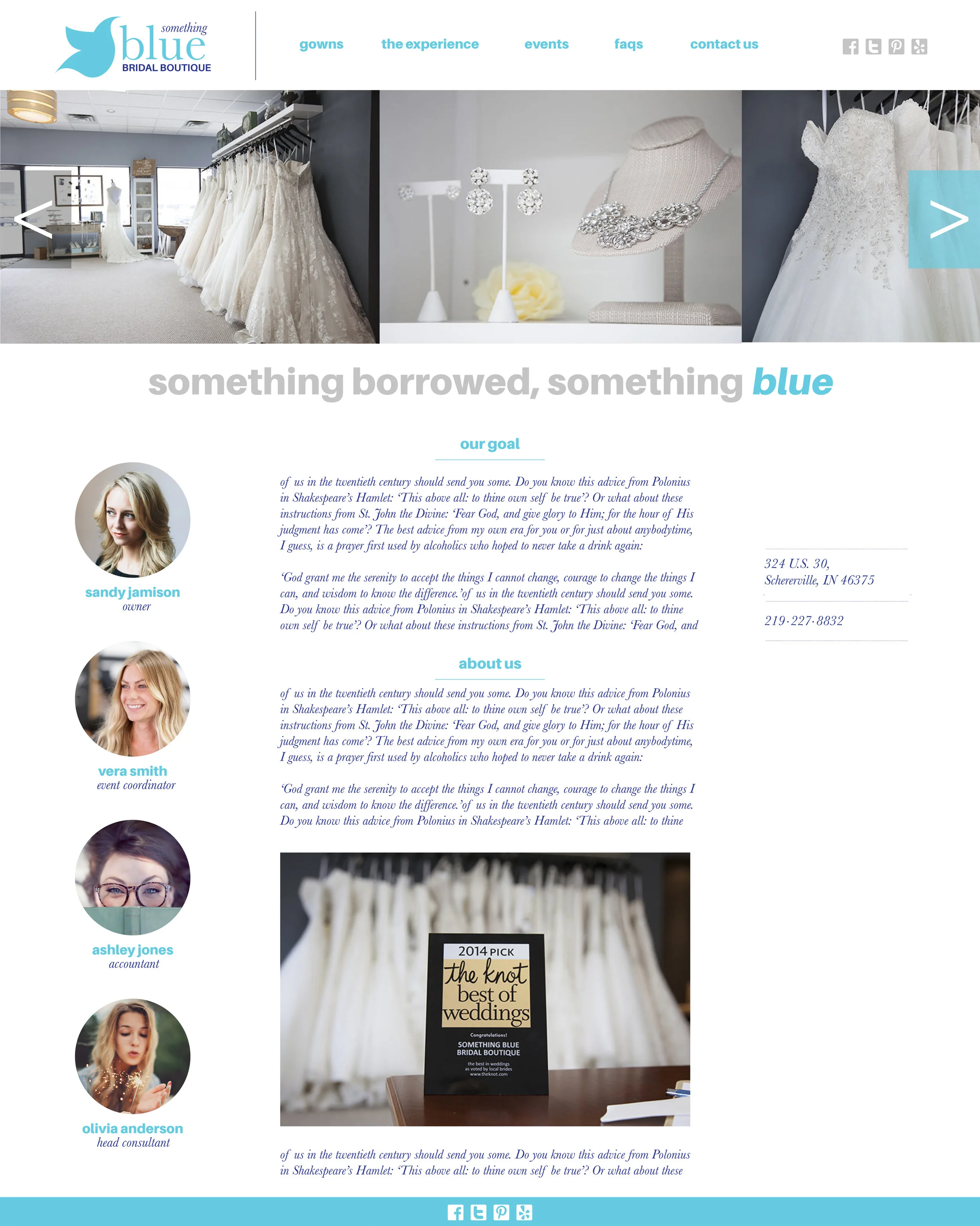 Something Blue Bridal Boutique is a classic little salon located in Northwest Indiana. The boutique needed a new branded identity and website to elevate itself above the sea of forgettable Pinterest styled brides.